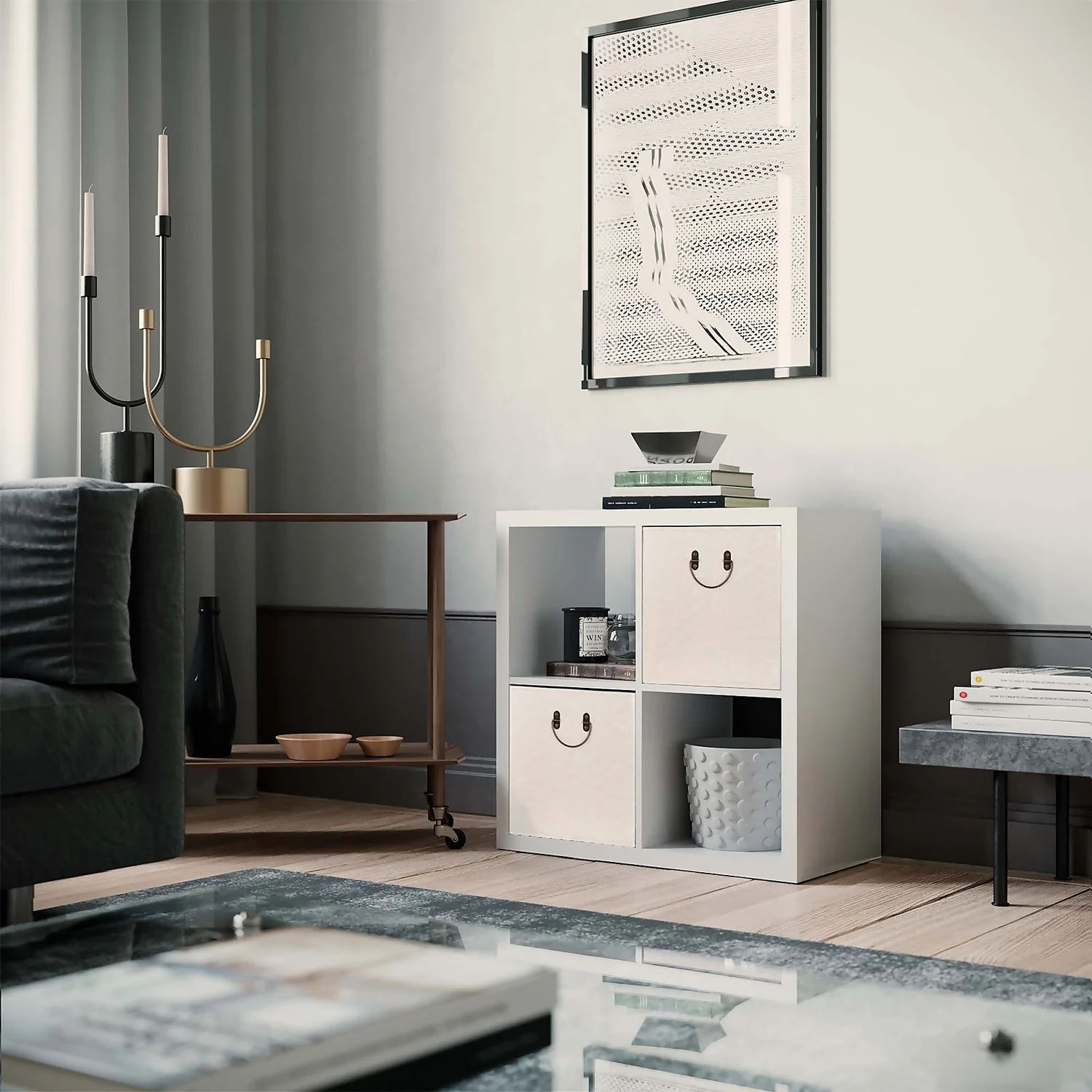 This Insert features a white, faux croc leather look with metal handles for easy sliding or movement. Made with a premium construction, you can use this Insert alone as a small storage box, on shelves, or with a Clever Cube unit; they are as good-looking as they are functional.