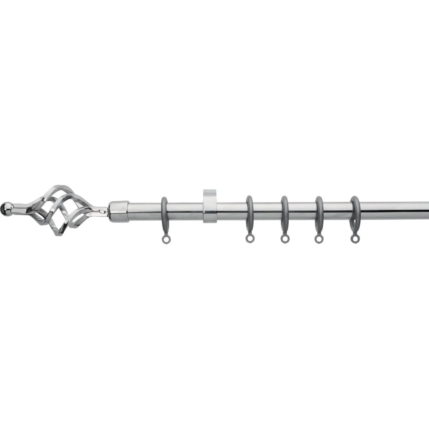 An extendable curtain pole with a traditional twisted cage style finial which offers a practical way to finish your window.